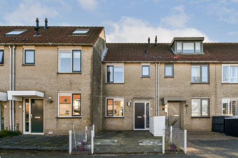Entree met meterkast, toilet met fonteintje, trapkast, bijkeuken en trapopgang naar 1ste verdieping. Vanuit de hal is zowel de keuken als de woonkamer bereikbaar. De woonkamer ligt aan de voorzijde en beschikt over vaste kasten. Via schuifdeuren is de eetkamer aan de achterzijde bereikbaar. De eetkamer beschikt eveneens over vaste kasten en biedt, dankzij de brede glazen pui, fijn uitzicht op de tuin. Door deze grote ramen valt bovendien veel natuurlijk licht naar binnen, waardoor de kamer heerlijk ruim aanvoelt. De eetkamer biedt toegang tot de keuken. Deze is deels v.v. inbouwapparatuur en beschikt over aansluitingen voor wasapparatuur. Zowel vanuit de keuken als de eetkamer is de tuin bereikbaar.